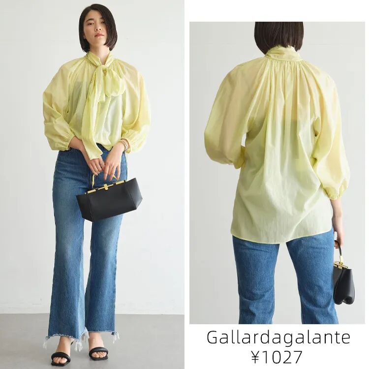 飄帶襯衫除了單穿之外,在春天作為針織衫的內搭也是非常不錯的選擇。Gallardagalante這件檸檬黃還蠻清新的。
