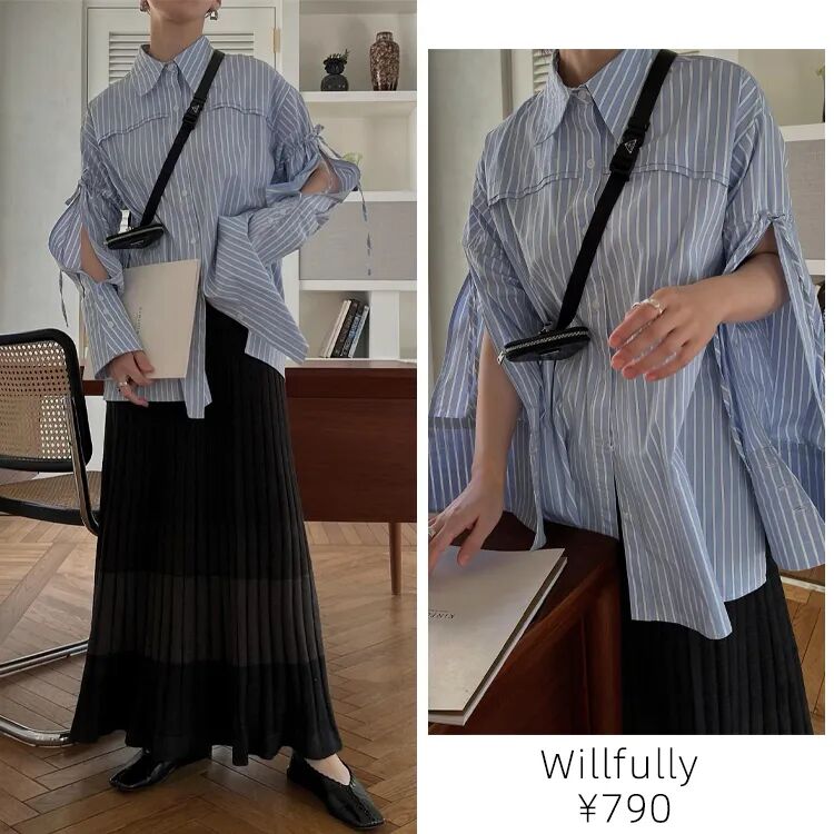AKTE這條的版型就比較利落一點,配上喇叭袖還蠻有慵懶氣質的。