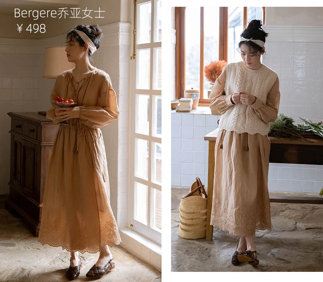 下面這件更特別,裙襬有鏤空設計,可以學畫報搭配針織背心哦~