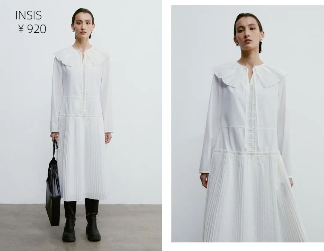 INSIS這件褶皺坐在裙襬和領子,復古的小褶,很特別。
