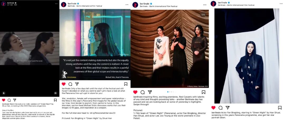 不僅帶著作品,出席活動的衣著夠隆重,排面也很足,Berlinale官網打開主頁電影海報群像的C位是她,閉幕式藝人紅毯集錦,視頻封面也是她。