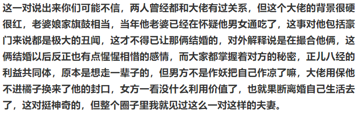 今天說說唯一一對因為大佬結婚的夫妻,現在也已經離婚了,