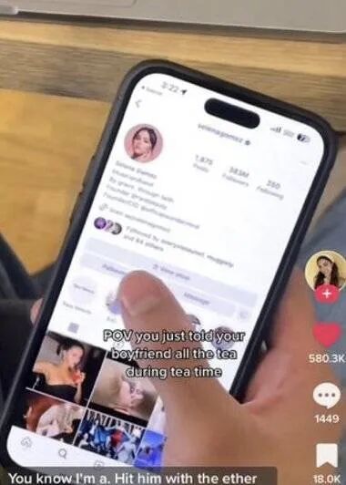 再次感慨,你永遠不知道互聯網下一個風潮是什麼,最近外國短視頻上的新風潮就是向身邊人說明這件事的來龍去脈,然後錄製下對方ins關注賽琳娜的畫面……