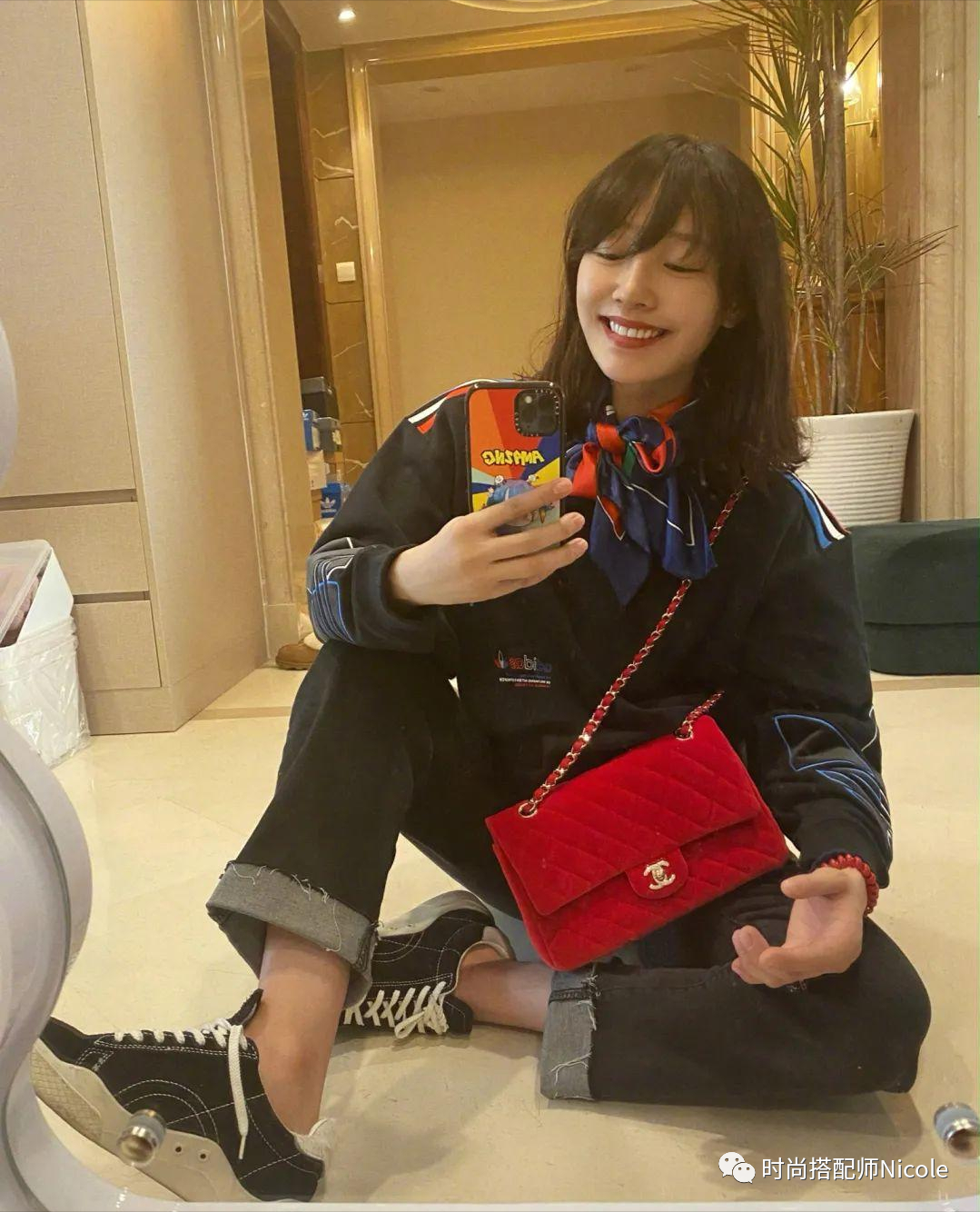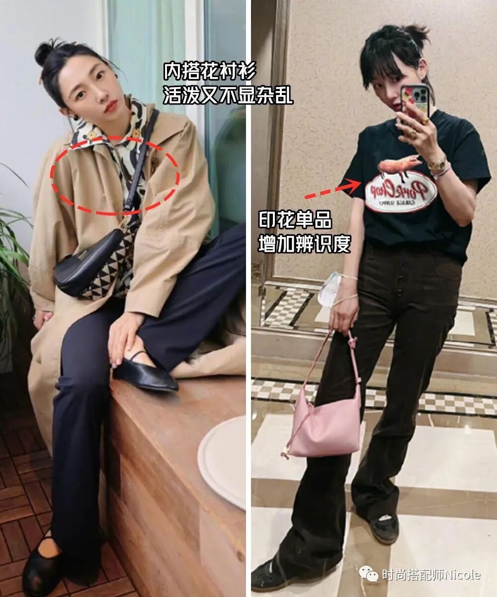 但是印花+色彩的疊加,普通人很難拿捏,可以簡化一下,確定一個基礎色的主色調,然後用彩色配飾點綴一下。