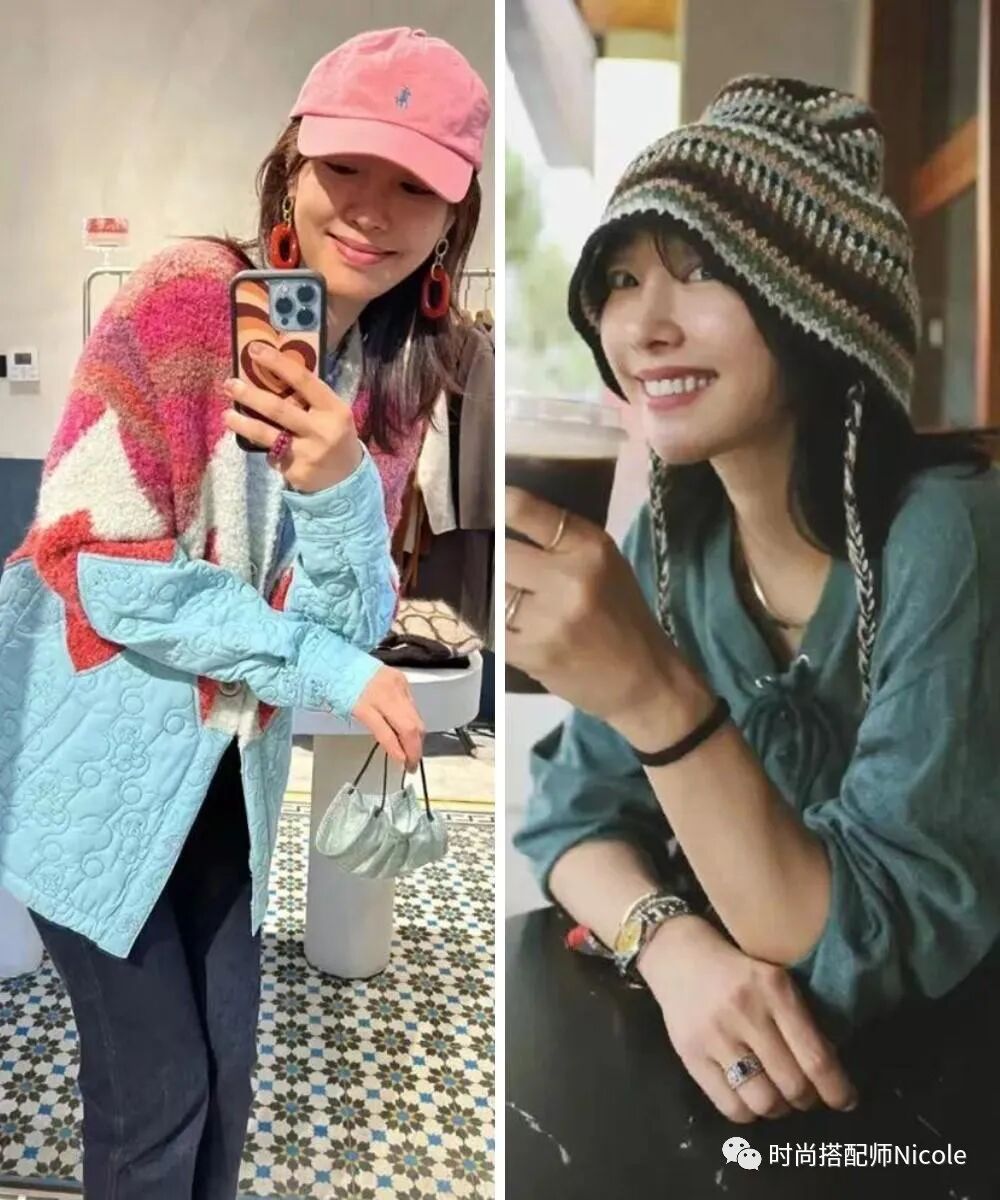 顏色豐富的毛線帽、棒球帽既能遮住油頭,又能顯臉小,不想化妝洗頭的日子戴上就能出門。