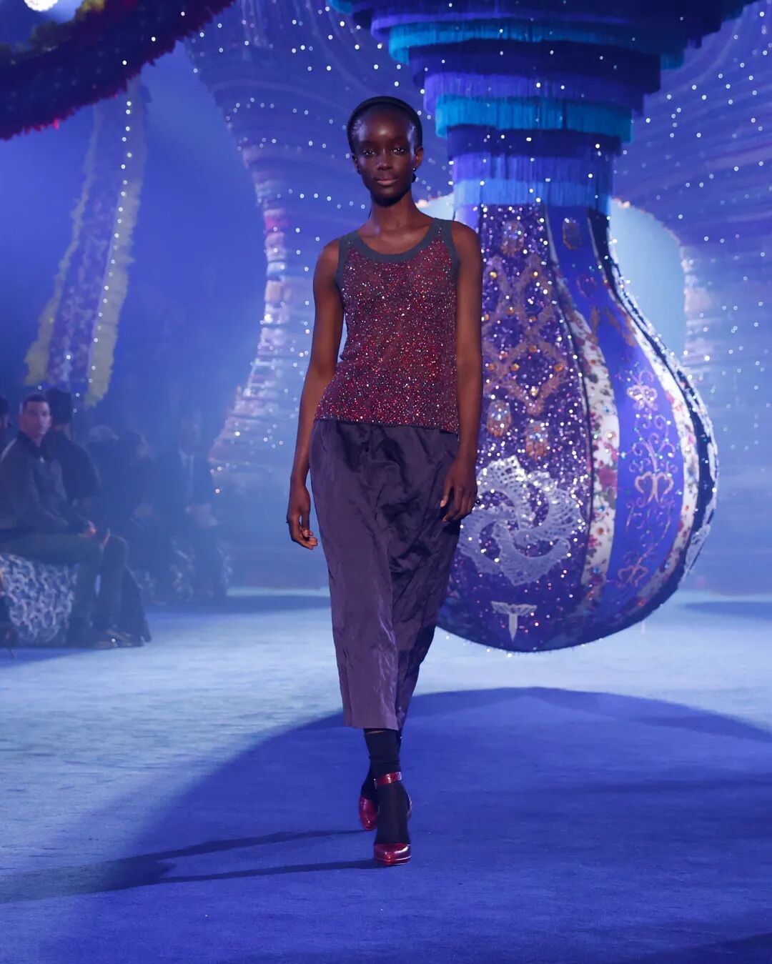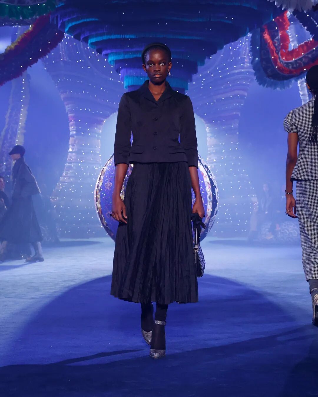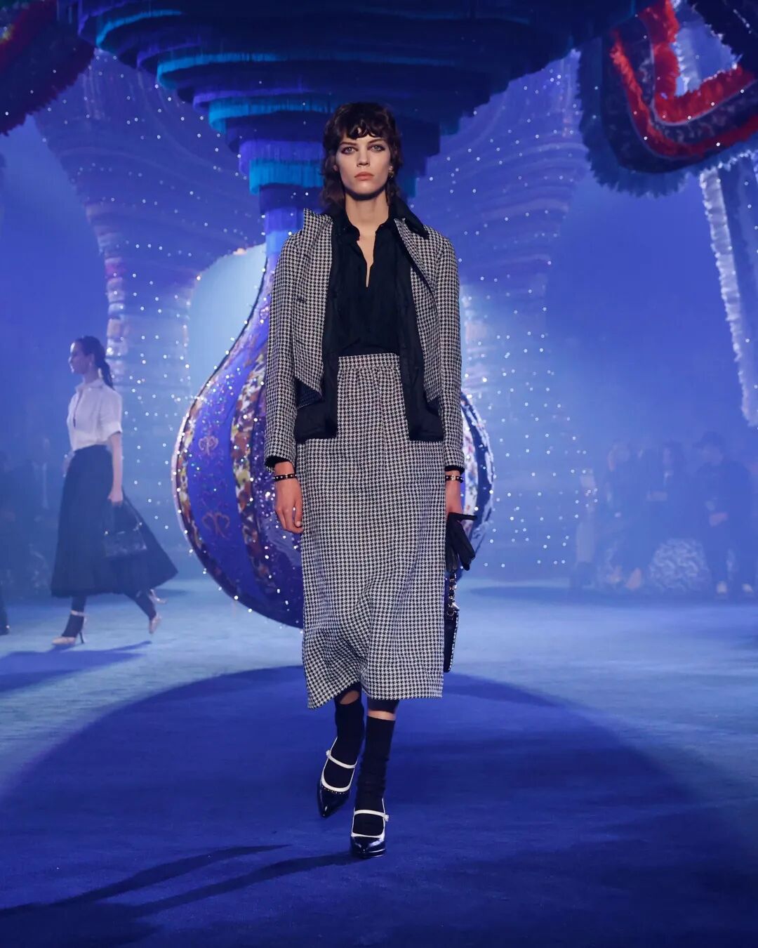 96套精心設計而成的look煥新詮釋20世紀50年代的法式風格,同時聚焦3位傳奇女性的獨立先鋒意識,傳揚新當代女性之精神,攜手葡萄牙藝術家瓊娜·瓦斯康絲勒共同打造秀場置景。