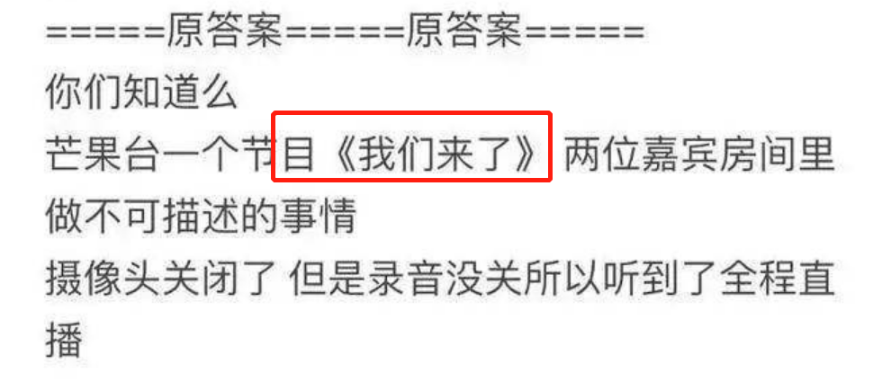 說兩位嘉賓在錄製綜藝的時候,在房間裡發生了不可描述的事兒,因為錄音設備沒關,就被全程直播了。