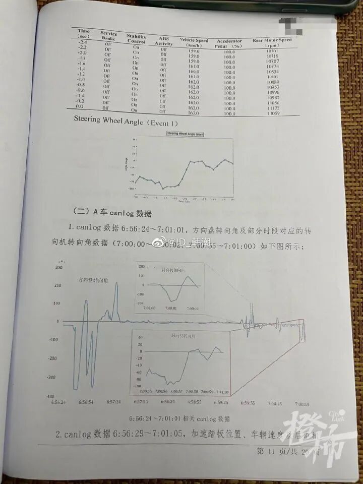 不過,博主“ID_韓潮”在微博公開了本次事故的EDR文件。數據顯示,在車輛高速行駛的整個過程中,加速踏板開度全程100%,而剎車一直處於「OFF」狀態