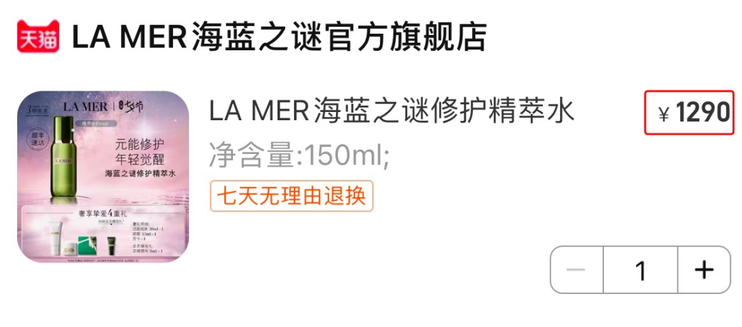 它的專櫃價對於普通上班族來說有些吃力,官網賣1290/瓶,說不心疼是不可能的。