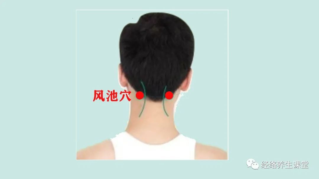 2、風池穴位於耳朵後面頭骨下兩條大筋外緣窩窩中,與耳垂齊平處。