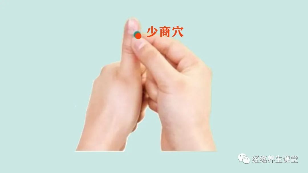 4、少商穴位於手指,大拇指末節橈側,指甲根角側旁開0.1付(指寸),將大拇指伸直,用另一手大拇指彎曲掐按該手大拇指甲角邊緣處。