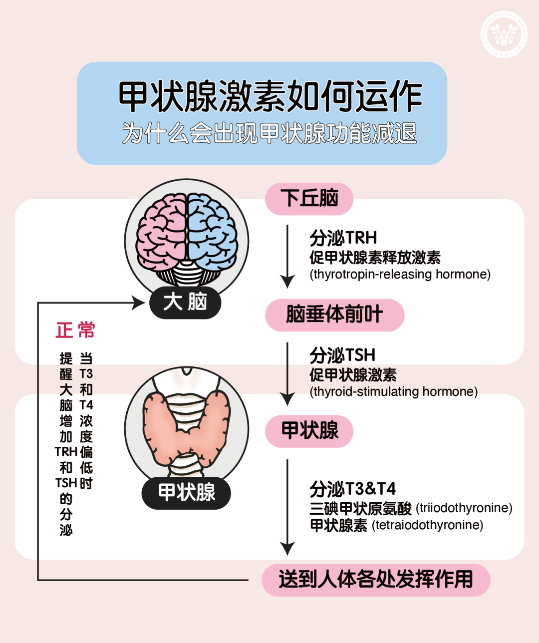 當甲狀腺無法產生足夠激素時,人體內的化學反應平衡就會被打破,就會導致甲狀腺功能減退症