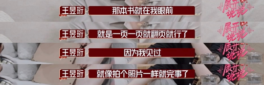 上《展開說說》綜藝時,他說沒覺得自己比別人有多強,甚至還有點羞恥,“我閉上眼睛,那本書就在我眼前,就是一頁一頁就翻頁就行了,因為我見過,就像拍個照片一樣就完事了。”