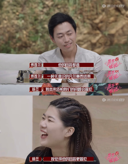 此時此刻四位主持人都笑了,傅首爾說,他的回答都是一種無意識的凡爾賽而結束。