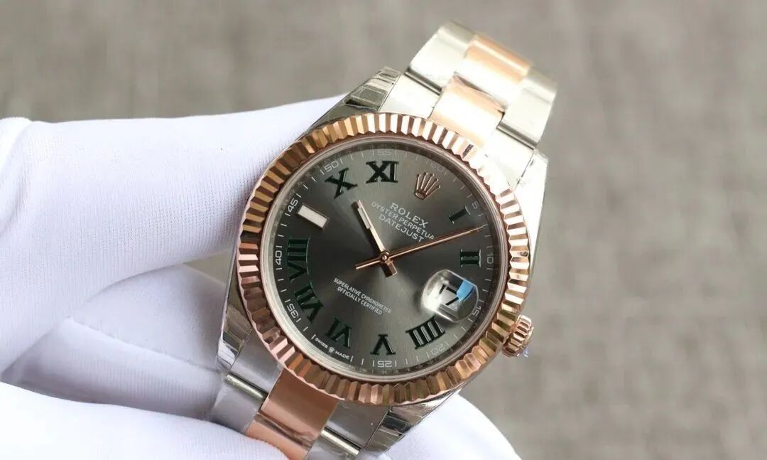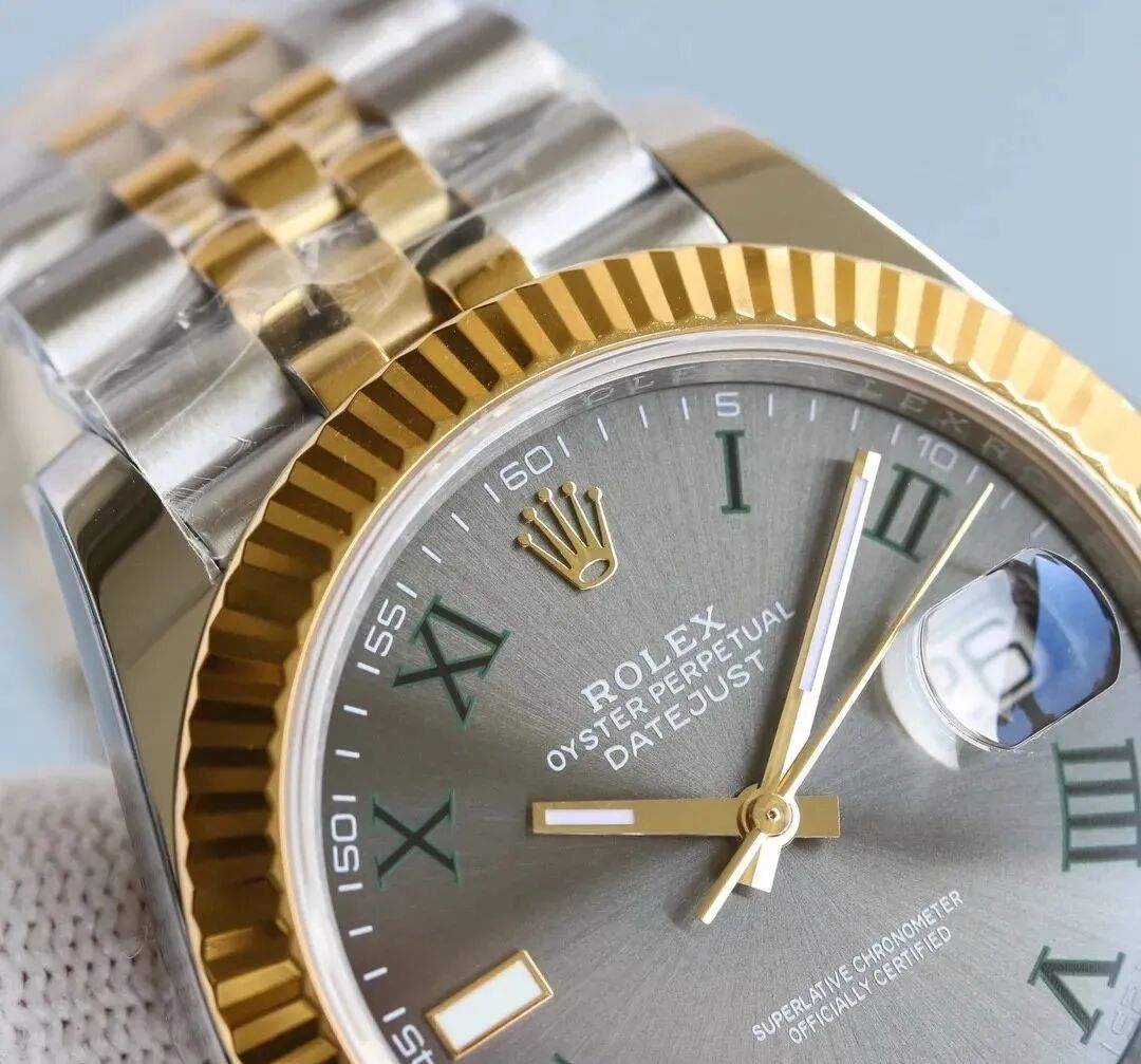這款日誌型腕錶被網友們親切稱為“金綠羅”,名字大概是來源於它黃金與精鋼搭配的金屬組合,再加上綠色的羅馬數字時標,在腕錶上融合交匯,形成獨特的美學風格。腕錶採用蠔式鋼打造蠔式錶殼,標誌性的三角坑紋外圈(俗稱“狗牙圈”)的材質是黃金,表徑為41毫米,適合大多數人佩戴。盤面3點鐘位置設有凸透鏡日曆顯示窗口,便於讀取日期。腕錶搭載的是3235型自動上鍊機械機芯,動力儲備約為70小時,防水深度100米。