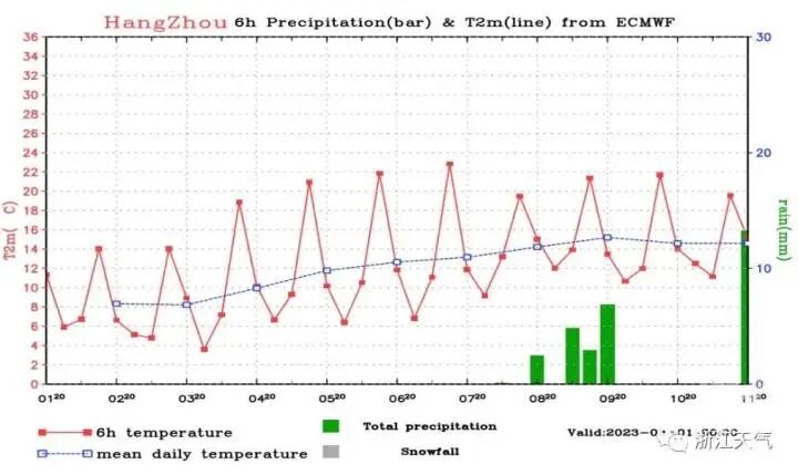 從數值預報來看,4日開始平均氣溫也是穩步上揚,即便最高氣溫略有回落,日平均氣溫也都將穩定在10℃以上,杭州入春已近在咫尺,請大家靜候官宣。