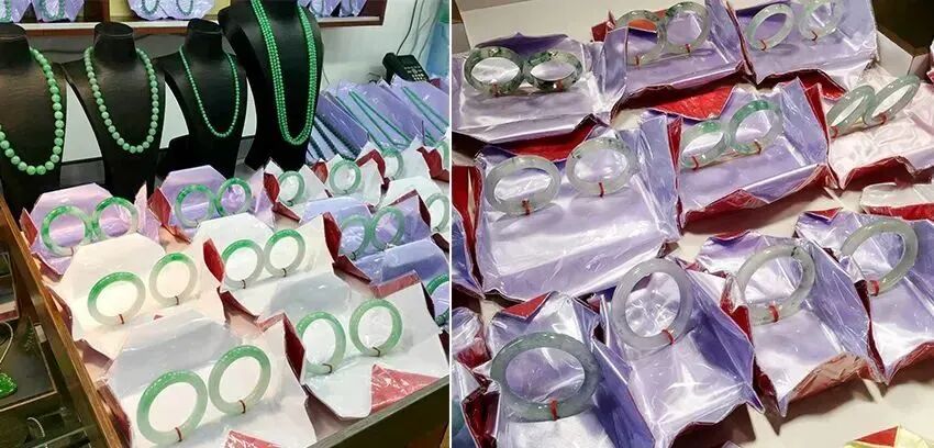 印象裡商場的玉手鐲都是各種鎂光燈打著,在櫃檯裡面猶如皇太后般伺候,而在翡翠批發市場,十幾萬、甚至幾十萬的翡翠,怎麼就這麼隨便亂放,是真的值那麼多錢嗎?