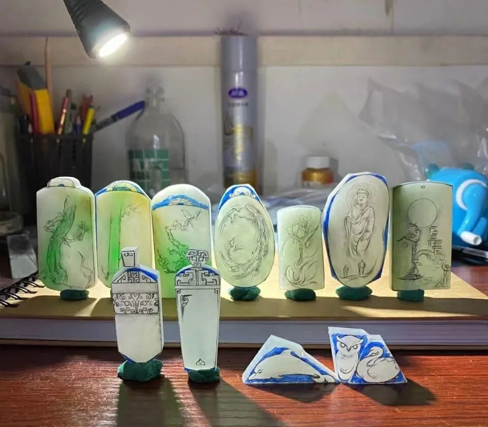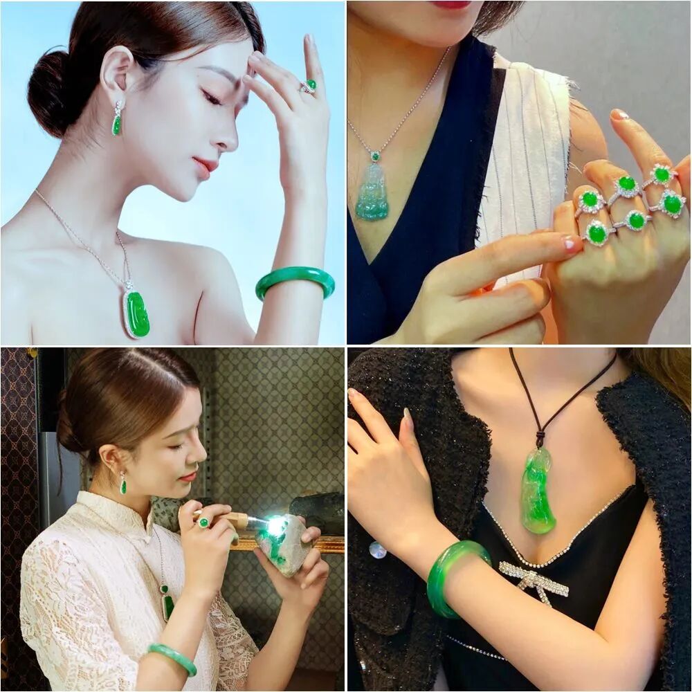 我能夠以第一手的價格拿到翡翠原礦石,再結合寶石的特點,設計、打磨到成品,所有流程都是我們自家完成,我每天都會在朋友圈發一些不同款式的翡翠飾品、擺件。