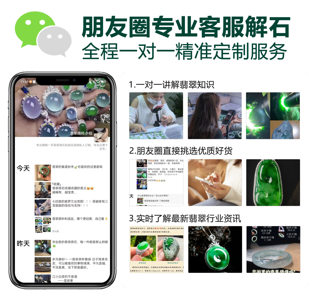 經常有客戶說就是每天看看我朋友圈裡的產品介紹,也是一種享受。不買沒關係,就當多加個朋友。如果你有任何關於翡翠原石、翡翠成品的需要或幫助,我也會耐心幫你解答。翡翠製品,不管是吊墜、手鐲、戒指、項鍊還是擺件,我們都在經營,也非常的希望能和全國喜歡翡翠的朋友一起交流,學習更多的翡翠知識。