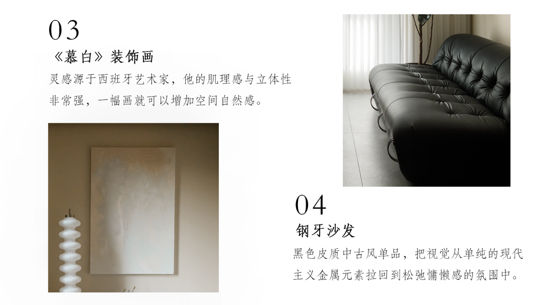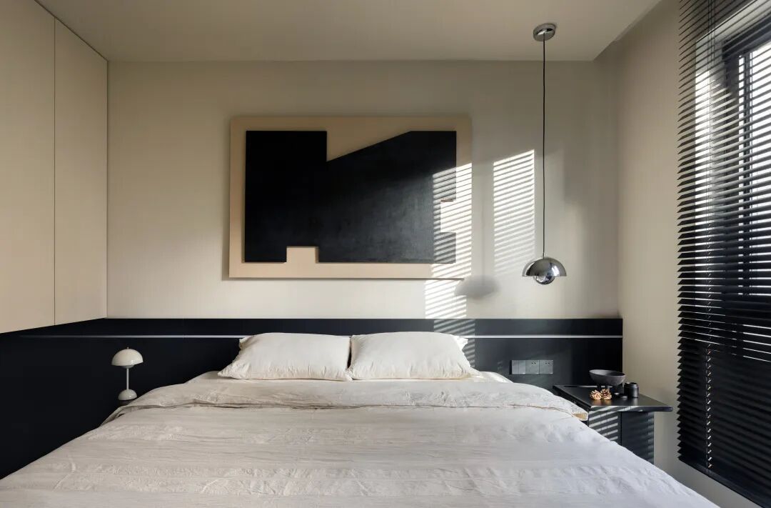· 侘寂風浮雕畫,以更強的肌理感給臥室增添了自然的元素。