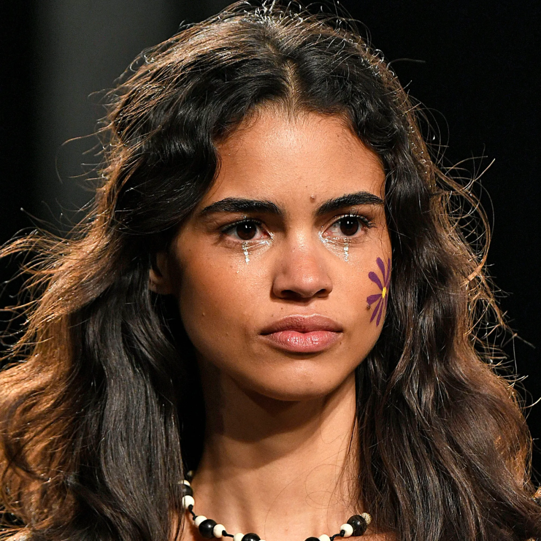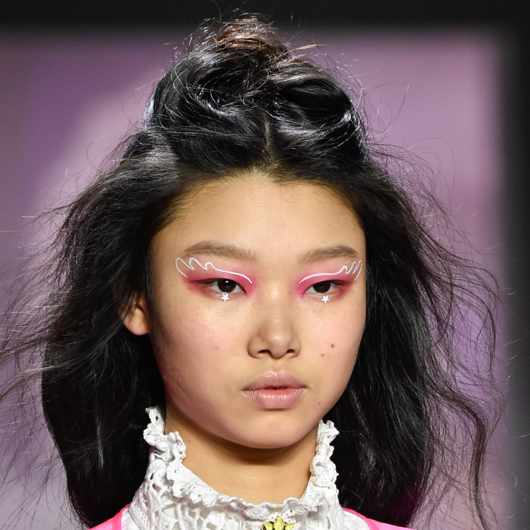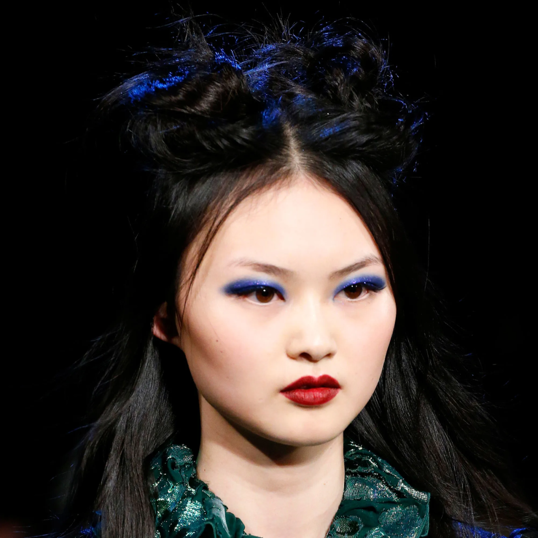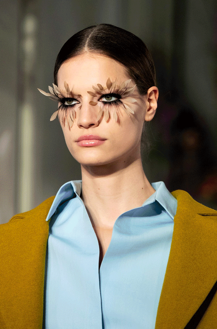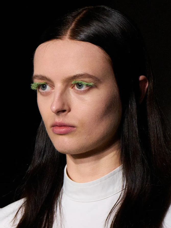 其實彩色假睫毛是Prada這場秀妝容的亮點,看看其他model的顏色可能會好一點?