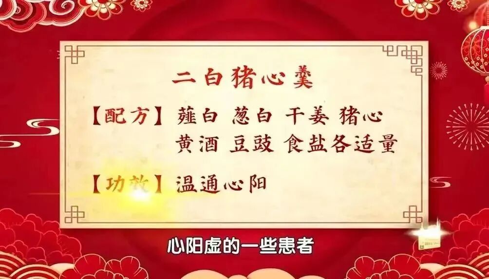 除了上面的茶飲,對於心陽不足,痰濁內溼人群,中國中醫科學院西苑醫院的專家宋春鑫醫師,也有一道藥膳,二白豬心羹,幫助溫通心陽。