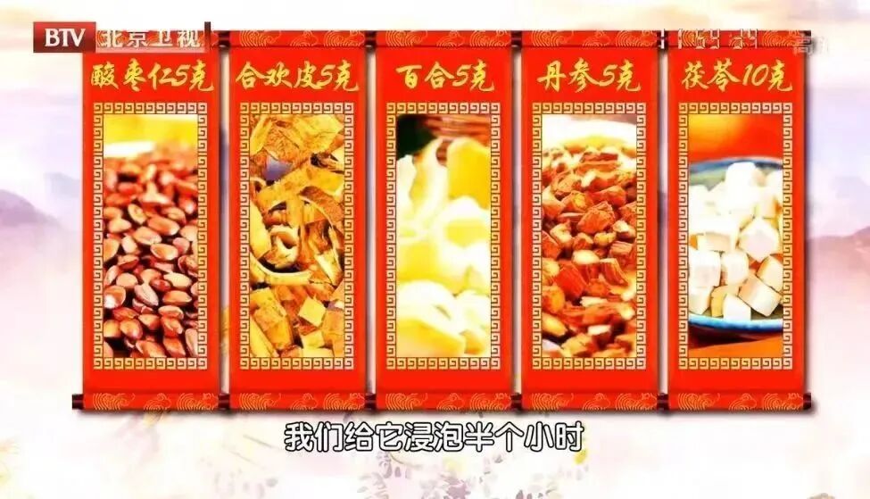 配方:百合5克、茯苓10克、合歡皮5克、酸棗仁5克、丹參5克