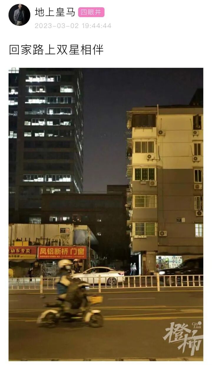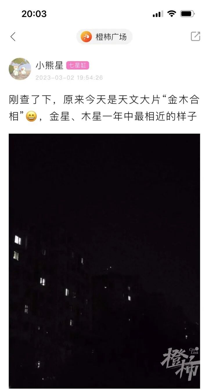 “剛查了下,原來今天是天文大片金木合相,金星、木星一年中最相近的樣子。”