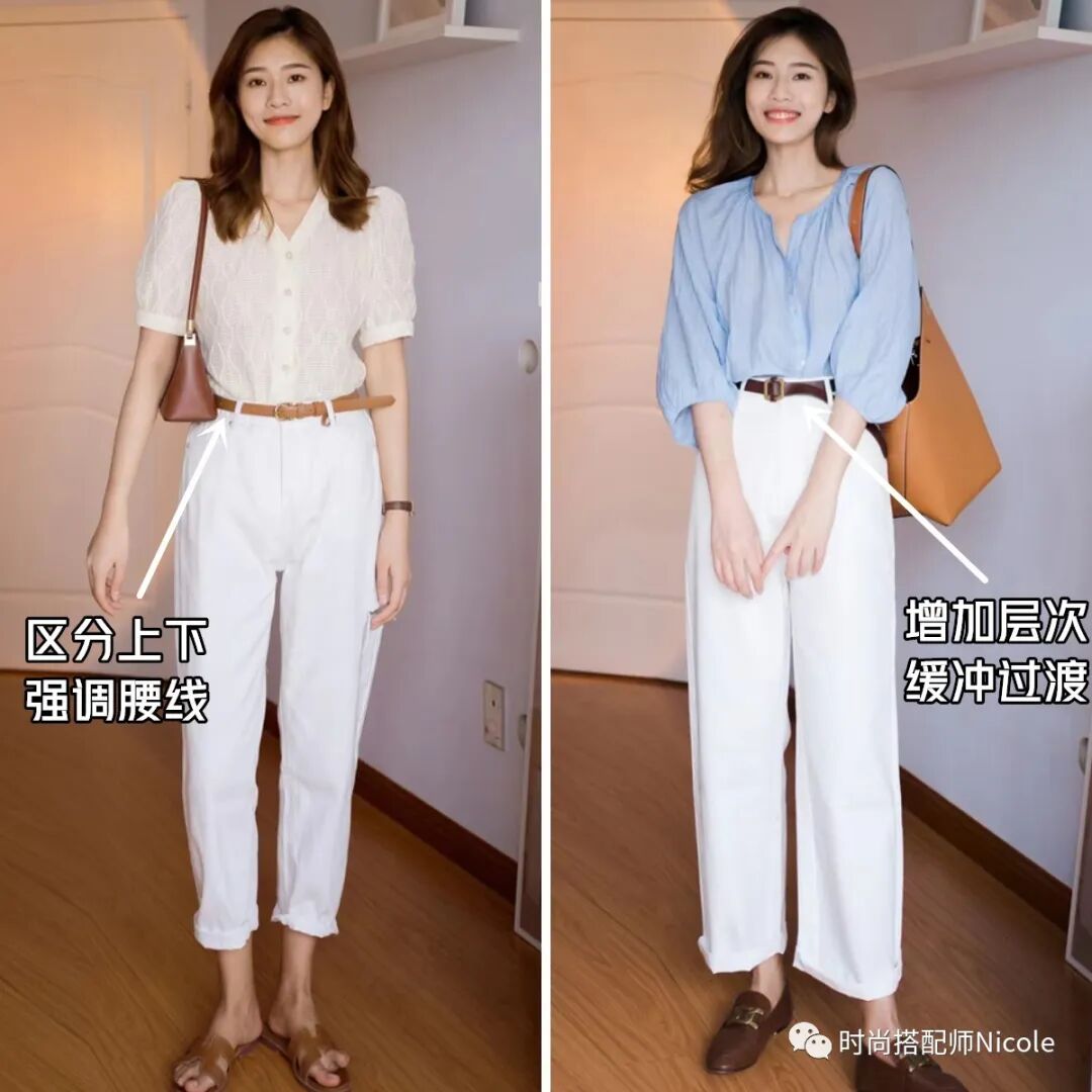 小個子想要顯高、梨型身材想要顯腿瘦、微胖身材想要顯得比例好,這通通的全部訴求都要靠提高腰線、強調腰線來實現。