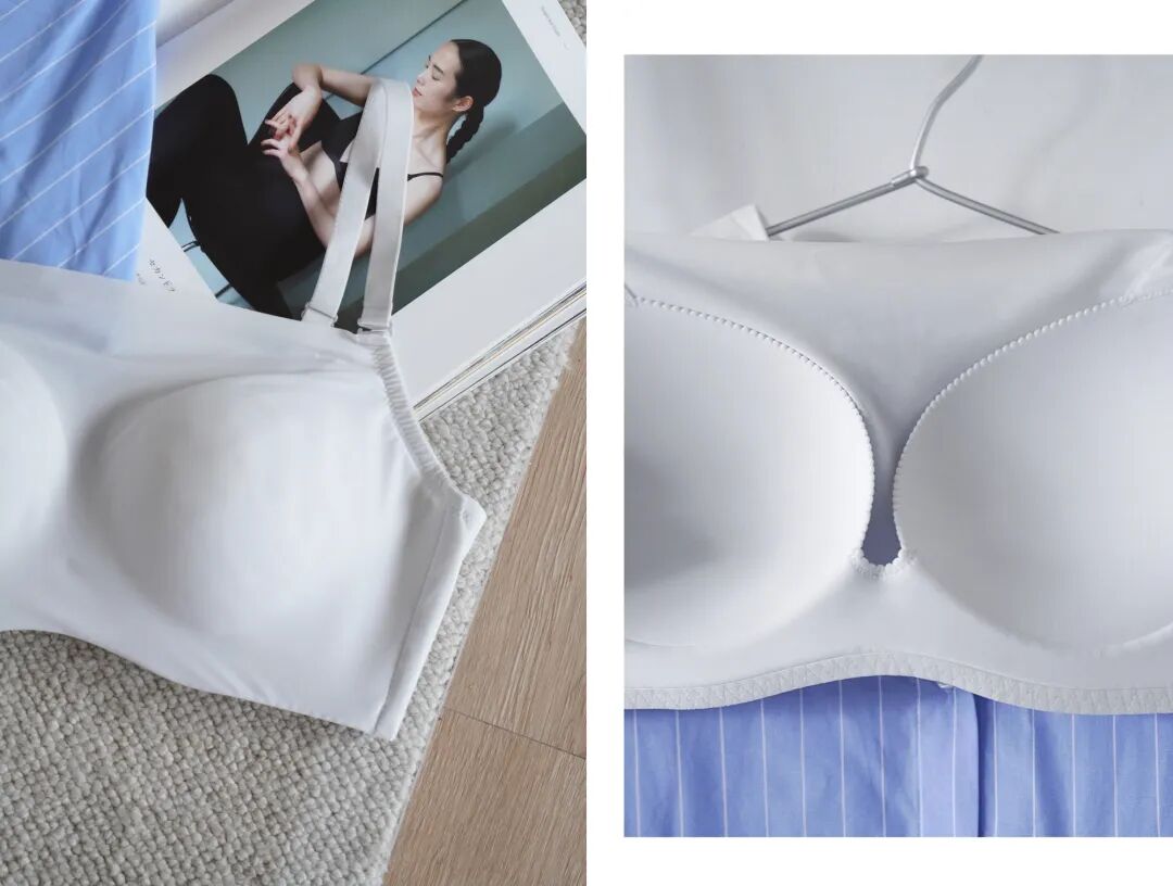 再加上兩側包邊,承託力真的不錯!上身自帶聚攏效果,能讓胸型挺而圓潤。可以說是既舒適微聚,又輕薄提拉,小胸大胸都能穿哦~