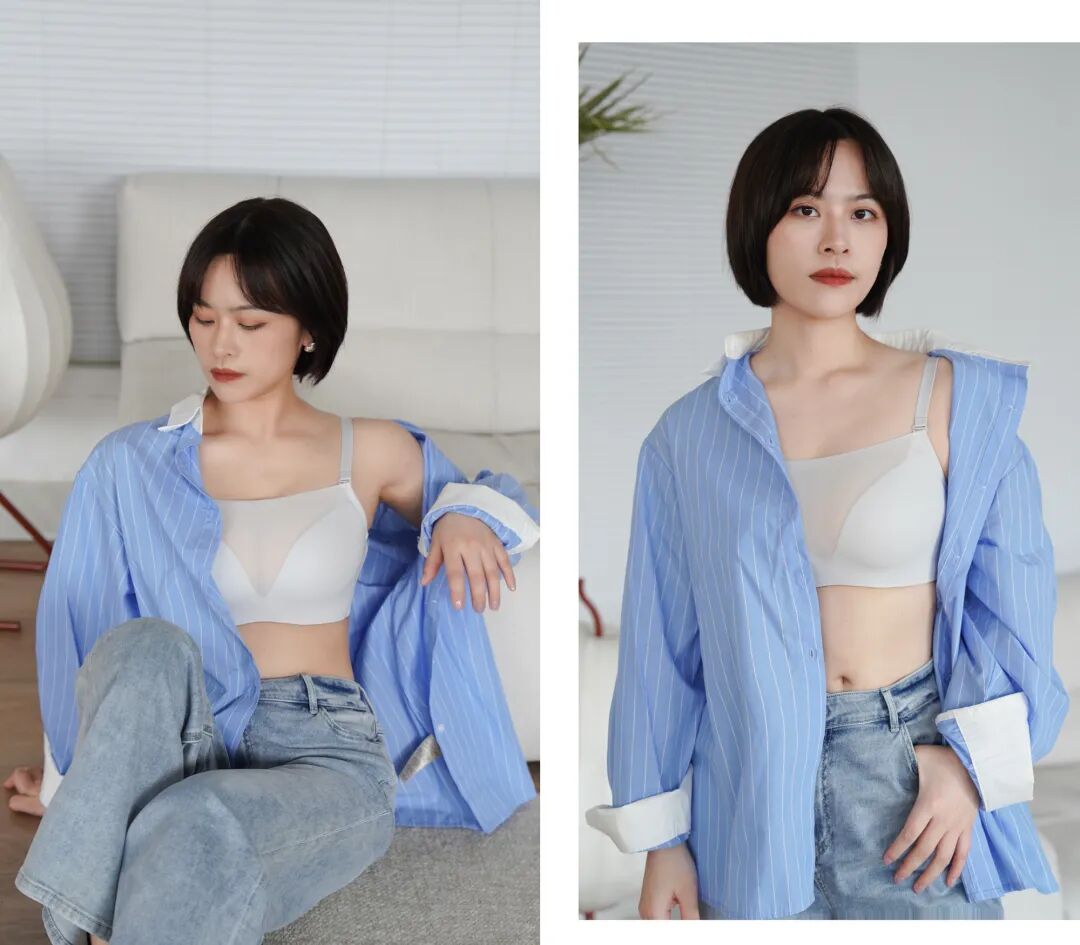 輕紗後隱藏著和小魔聚一樣的無痕花邊,在利落的設計里加了絲少女心。實用性上也更貼胸型的弧度,不易空杯。