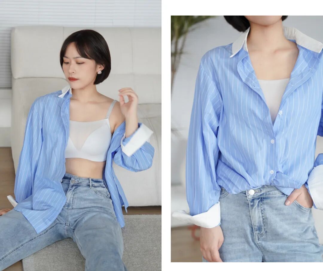 這件的杯墊有兩種厚度。該厚的厚該薄的薄,既貼合又有曲線。穿上無束縛感,而胸型照舊圓潤卻不外擴~可以說舒適與聚攏拿捏有度。