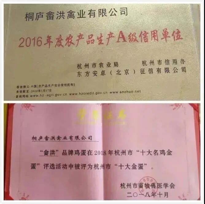 2016年,老陳的公司被評為杭州市農產品A級信用單位。2018年,黑雞蛋被杭州市畜牧獸醫學會評為杭州市“十大金蛋”。2021年10月,老陳的“莊園”被杭州市農業農村局授予“杭州市綠色品質農業綜合示範”。