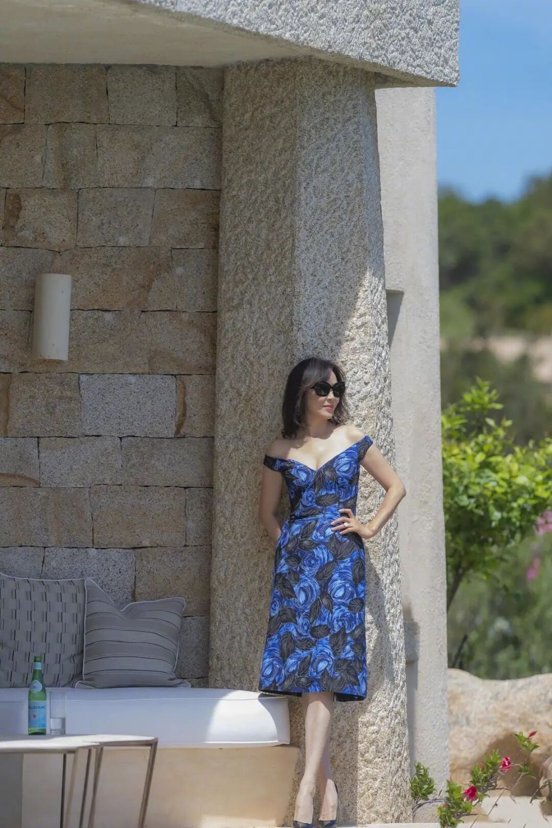 這件裙子上的藍色印花看起來雖然略微浮誇,但年紀偏大的女人是很能駕馭住這種氣場的人,所以這種大圖案的設計是很適合她們的。