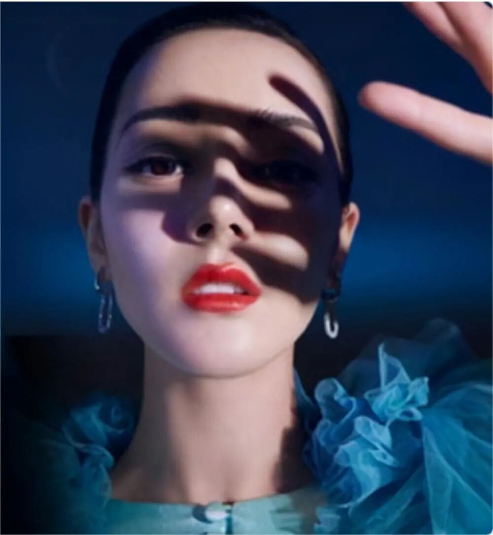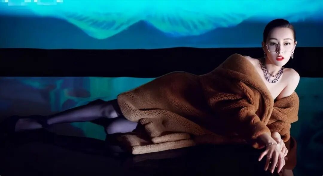 熱巴身穿藍色妖姬顏色的蛋糕裙,燈光與服飾和背景的相配合,讓整張圖片都凸顯出一種高冷又高貴的感覺。