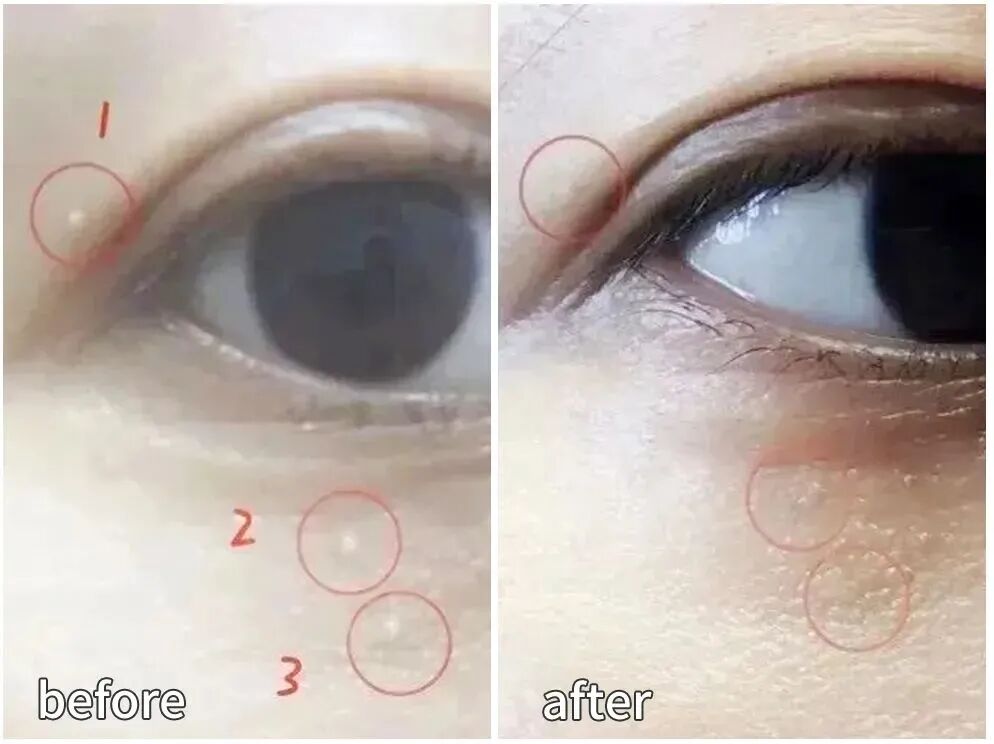 過了幾天印子消失,完全看不出來長過脂肪粒,眼周還比之前更水潤了!