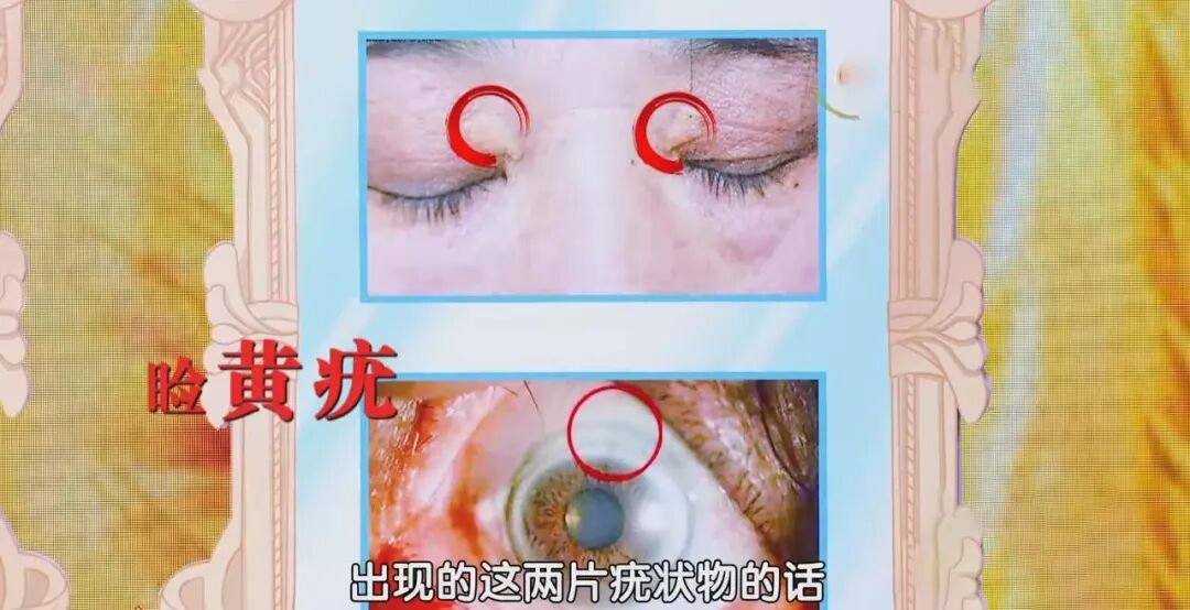 上圖,眼瞼上方內眼角部位出現兩片瞼黃疣,跟脂質代謝不佳有關;