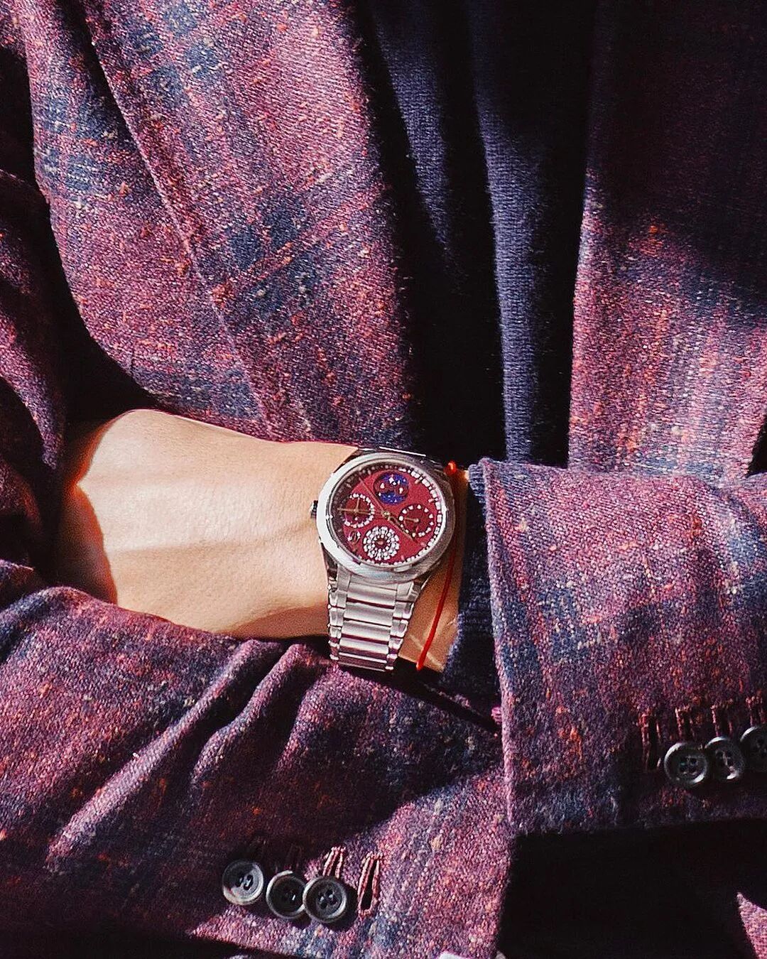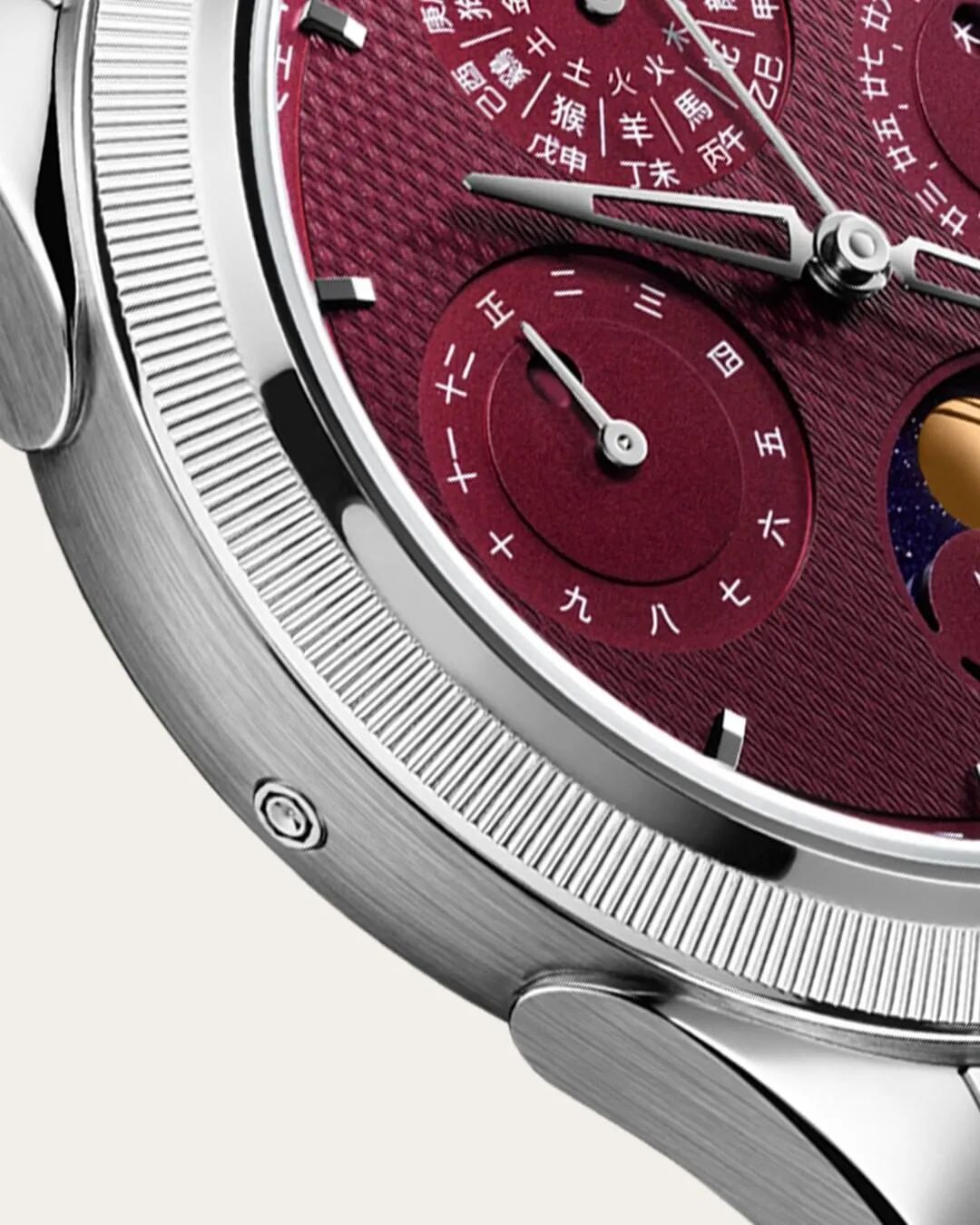 錶盤採用的深紅色名叫大繎。這是象徵尊貴的中國傳統色彩,比較契合腕錶主打的中國傳統文化元素。
