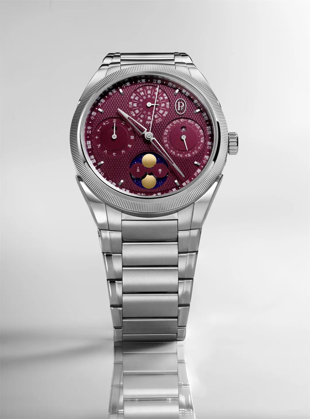 Tonda PF夏曆腕錶配備一體式錶鏈,增加了腕錶的“運動感”,並確保了佩戴的舒適度。