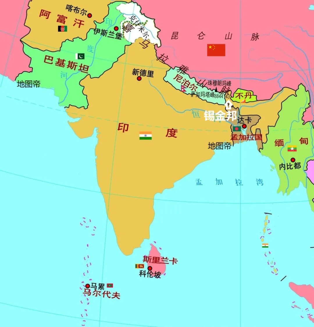 首先是錫金,位於喜馬拉雅山南麓,以東是不丹,以西是尼泊爾,南北分別是印度和中國,錫金介於四者之間。從1642年開始,錫金建立王朝,由於國力貧弱,錫金在與尼泊爾和不丹的戰爭中屢屢受挫。公元1788年,尼錫戰爭爆發,尼泊爾廓爾喀人在攻陷錫金首都之後繼續向西藏推進,結果遭到清朝的強力反擊。儘管福康安和海蘭察打退了尼泊爾的進攻,但錫金仍有大片土地被佔領,加上此時不丹軍隊趁火打劫,戰後錫金保留的區域比現在的印度錫金邦大不了多少。
