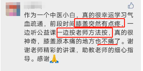 @隨風漂流:48歲,中醫小白的我如今遇到一些日常身體問題,如感冒、頭痛等,跟著群裡的老師認真學+反覆練,用手指頭點點按按,也可改善疼痛。