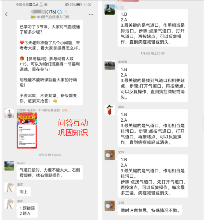 老師也會在群內教你生活中日常病症的調理方法,如肩頸疼痛、膝關節、咽炎、胃痛、腹瀉…..但不問診!