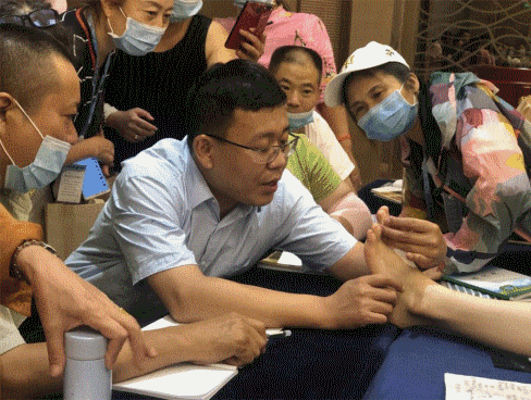 比如,膝蓋疼痛,在小腿上找到對應堵點,通過點按疏通,讓全身氣血運行起來,會感受到身體有股熱氣在流竄。