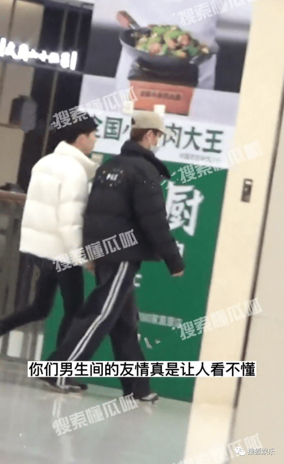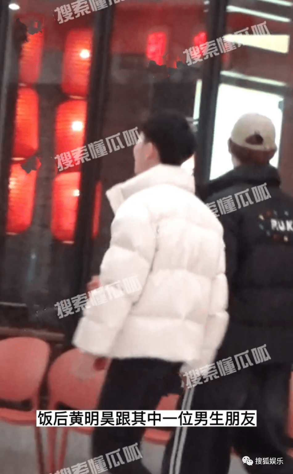 飯後,黃明昊與其中的一位穿白色衣服的男性朋友肩並肩同行。