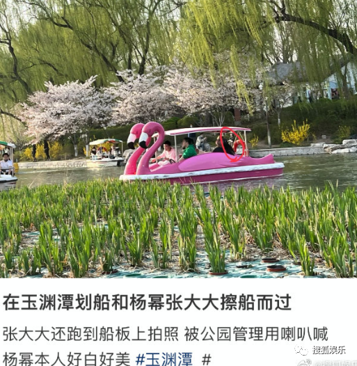 到了四月,正是北京玉淵潭櫻花開得正盛之時,有網友稱在玉淵潭公園偶遇楊冪、張大大一起賞櫻,而林凡疑似也在“春遊小分隊”當中。