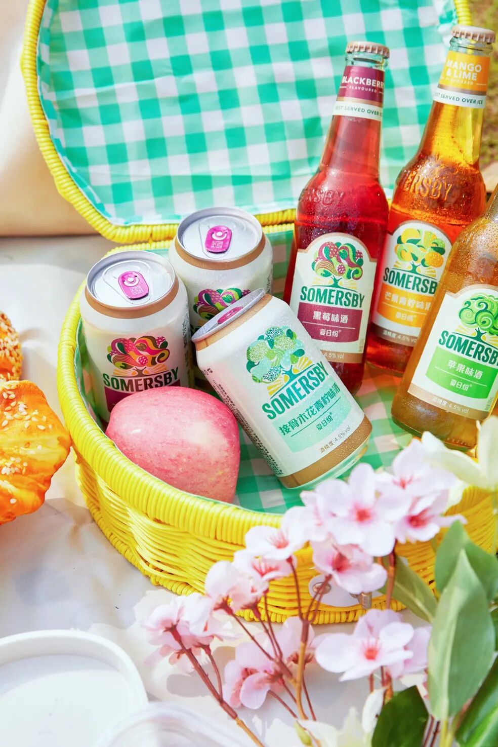 三五好友簇擁著野餐籃子,開啟今春第一瓶Somersby夏日紛果味酒,想把美好的春日風光、朋友笑聲、陽光都打包一起,來“籃”住春天🌿!