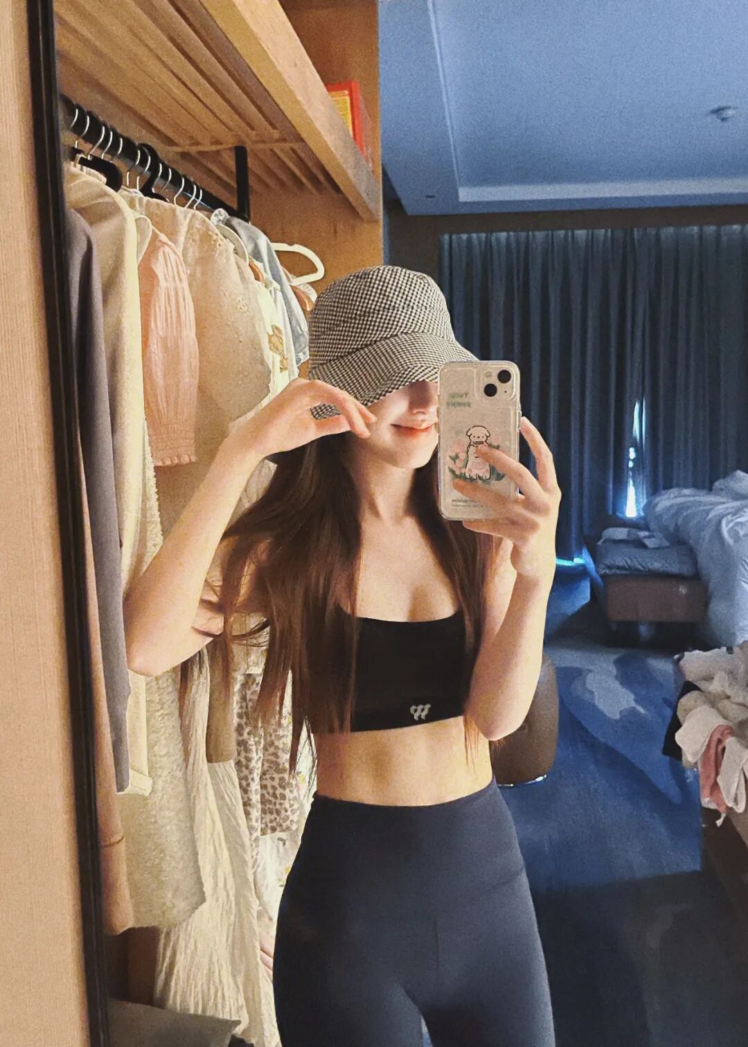 現在通過運動、健身,變得更加纖瘦。瞅瞅這有力量感的手臂線條、緊緻的腰腹,果然美女都有那個身材NB症。