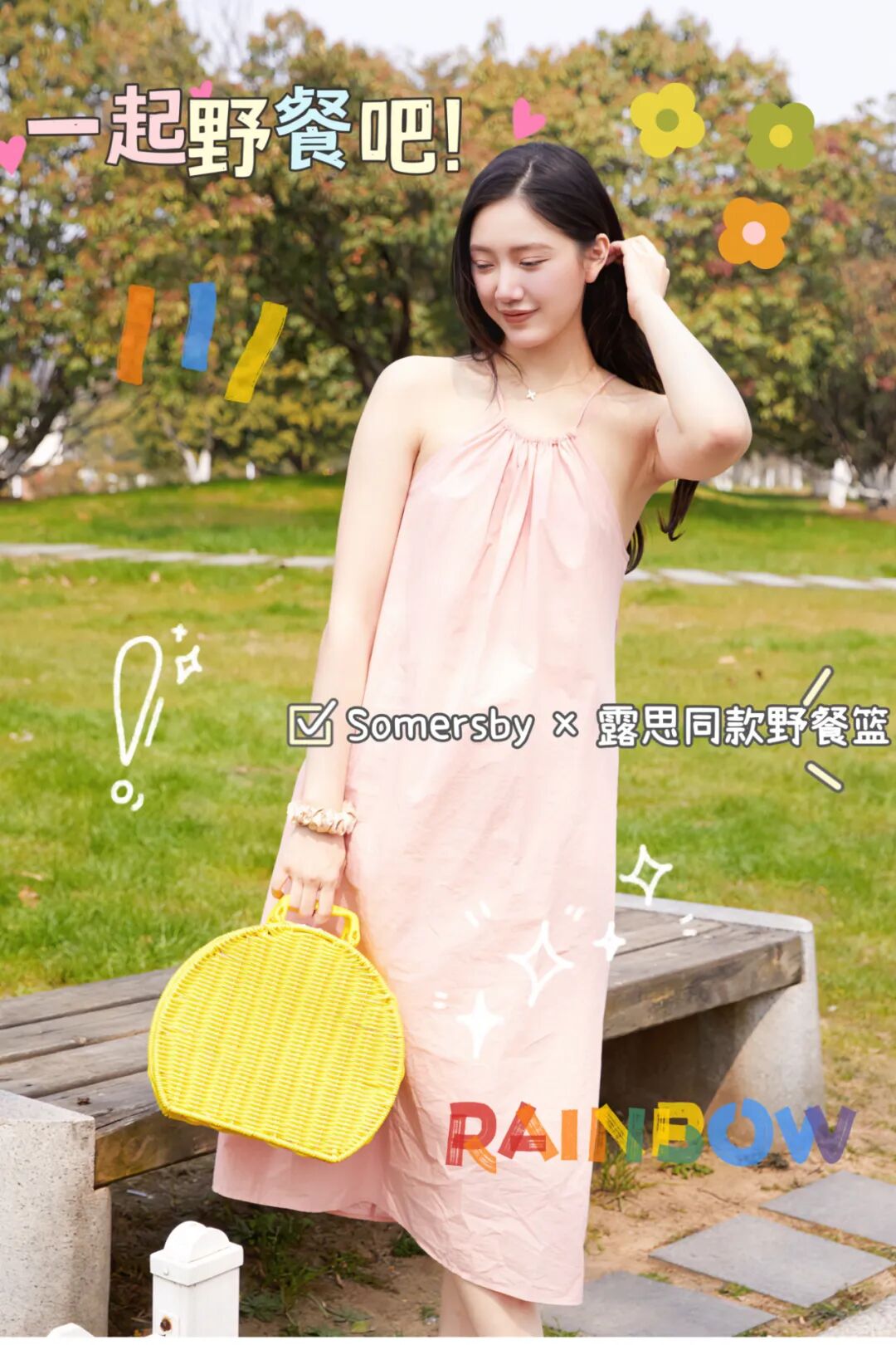 露思手上拎的野餐籃,看到的第一眼就猛戳我的心巴!它是Somersby夏日紛在今春推出的限定款,絕對是當下最能提升野餐儀式感的“靈魂道具”。