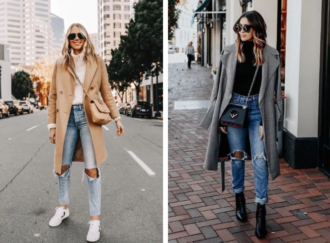 膝蓋破洞是最常見的破洞形式,不會很誇張,還能從視覺上提拉小腿曲線。