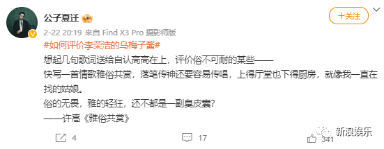 關於《烏梅子醬》的審美熱議逐漸演變為流量快消的短期熱歌和品質歌曲之爭,大家在微博上各抒己見、暢所欲言。